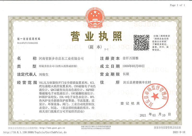 河南省新鄉市啟東工業有限公司始建于1987年,是專注研發、生產自動化儀器儀表(主要與壓力容器、鍋爐等容器配套使用)的廠家。主要產品有液位計(磁敏雙色型、磁翻柱型等)系列、烤包器熄火聯控裝置系列、壓力容器快開門安全聯鎖保護裝置系列、鍋爐報警器系列。二十多年來,公司產品暢銷國內并遠銷俄羅斯、蒙古與東南亞,深得廣大用戶的信賴和好評。我們多年來致力于自動化儀器儀表的研制生產,公司現具有完善的生產、試驗、檢測手段和設備??萍紕撔?、誠信服務,是我們不變的經營理念,我們將以強有力的技術支持及售后竭誠為客戶提供良好的服務?! ?012年我公司成功研發了KCL系列烤包器熄火聯控裝置,并于2013年2月2日榮獲中華人民共和國國家知識產權局辦法的《實用新型**證書》<**號:2021202257735>該產品廣泛應用于唐鋼等大型鋼鐵企業,為烤包器安全作業提供了有力的保障?! ?002年我公司成功研發磁敏電子雙色液位計獨特的高亮度LED紅綠雙色顯示,獲得了專家的首肯和用戶的一致好評。在此基礎上我公司研發人員十年磨一劍,致力于XQFB-1防爆型磁敏雙色液位計的研發,于2013年12月27日由國家防爆電器產品質量監督檢驗中心檢驗合格并頒發防爆合格證書<編號:cnex19.0883>。該產品性能得到了充分的發揮,廣泛應用于含有Ⅱ類A·B級T1-T4組可燃氣體或蒸汽與空氣混合形成的爆炸性混合物的0區、1區危險場所。連接用戶DCS或PLC系統實現遠距離集中顯示和控制,從而實現節能、數字化管理。為用戶增加了一定的經濟效益和社會效益,。2014年公司成功申請了夢潤儀表的logo,新的品牌新的形象,夢潤儀表是啟東的LOGO, 歡迎新老用戶前來洽談合作?! ∥覀円蝗缂韧刈⒅乜蒲械耐度耄瑧{借產品的不斷更新、加大科技含量,進一步拓展市場。我們相信品質成就未來,以過硬質量、優惠價格、完善的售后服務熱忱歡迎廣大客戶來我司視察指導、洽談業務;精誠合作,共創輝煌!